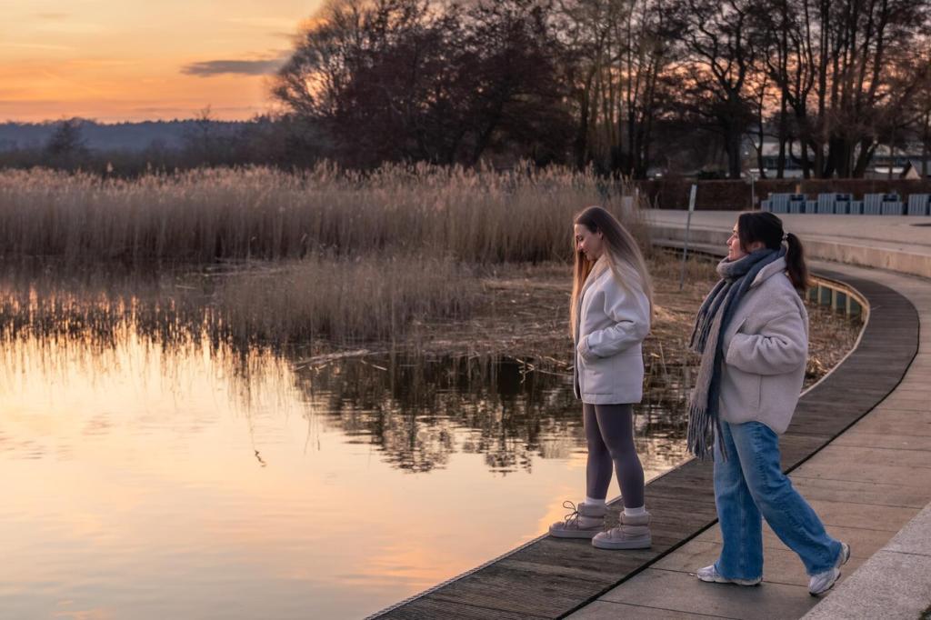 An Fassaden erzählen abgeblätterte Farben, handgemalte Ladenschilder und widerspenstige Kletterpflanzen Geschichten, die wir im Alltag übersehen. Ein langsamer Schritt verleiht Augen Zeit, Nuancen zu bemerken und Zusammenhänge zu spüren. Erzähl uns von deinem letzten kleinen Fund am Wegesrand.